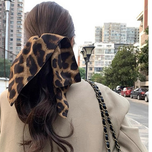 韩国vintage高级感超大版豹纹方巾发圈洋气时髦气质扎马尾发绳女