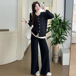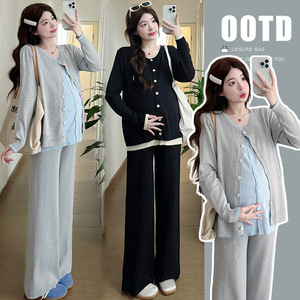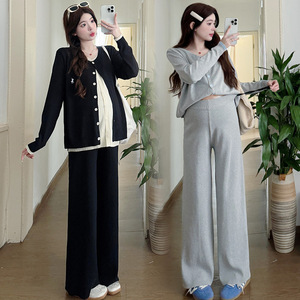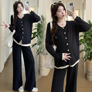 孕妇秋装套装慵懒风两件套2025新款针织长袖拼接上衣裤子孕妈穿搭