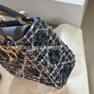 跨境外贸25新款D家手提mini毛呢戴妃包高级质感菱格单肩斜挎女包