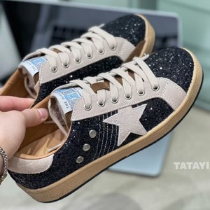 H55-星星鞋女2025秋季新款百搭休闲单鞋复古德训鞋女百搭圆头休闲