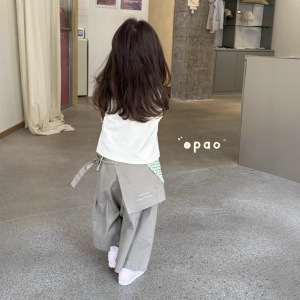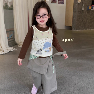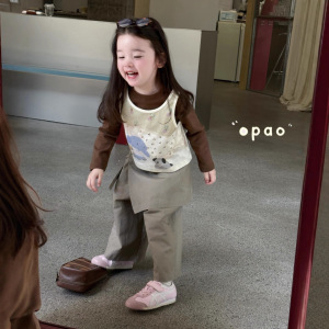 韩系童装女童秋装套装2025新款洋气儿童卡通长袖T恤阔腿裤三件套
