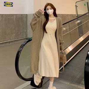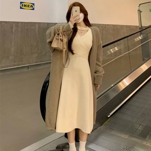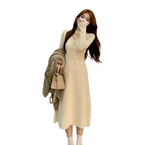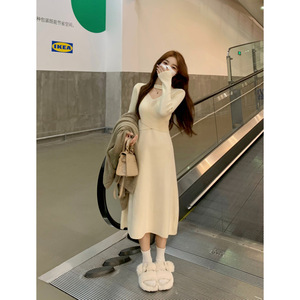 温柔风挂脖针织打底连衣裙子女2025新款秋冬气质显瘦内搭a字长裙