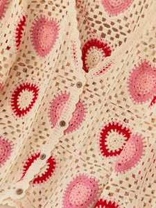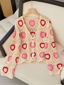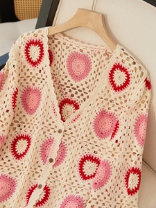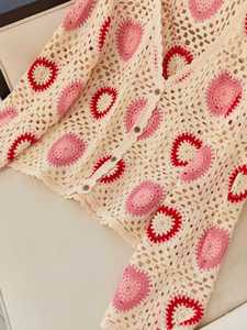 2025秋季新款手工钩花镂空针织开衫女宽松 V领设计感清新甜美外套