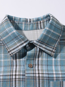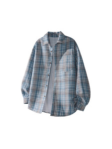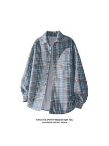 美式复古蓝色格子衬衫男款长袖高级感潮牌宽松慵懒风春秋衬衣外套
