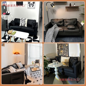 沙发小户型双三人出租房屋公寓服装店休息区接待黑色懒人客厅沙发