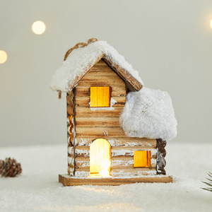 圣诞节新款装饰木质发光小木屋桌面布置摆件房间橱窗场景装扮布置