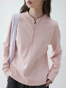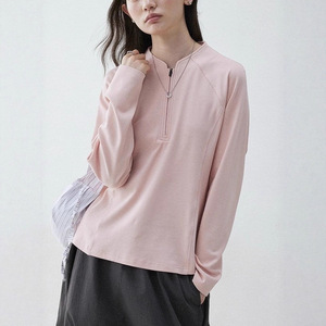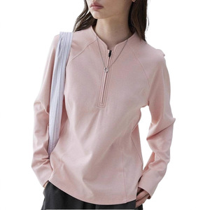 「芥末派vooe」甜美感粉色半开拉链修身T恤女春季新款插肩袖上衣