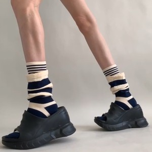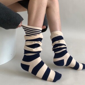 秋冬袜子女条纹百搭堆堆袜安可拉竖条纹中筒袜新款假两件潮流袜子