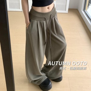 军绿色美式运动裤女春秋2025新款小个子低腰宽松显瘦休闲风阔腿裤
