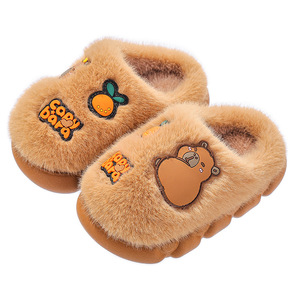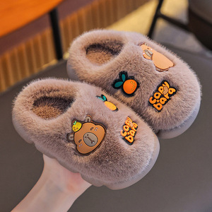 卡皮巴拉秋冬季儿童棉拖鞋男女童保暖加绒毛毛中大童亲子居家棉拖