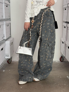 ME KAKAMEE十三行秋复古满印腊肠狗洗水直筒牛仔裤(配腰带) C0533