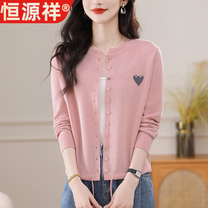恒源祥秋装新款好看毛衣外套减龄短款抽绳针织开衫薄款洋气时髦女