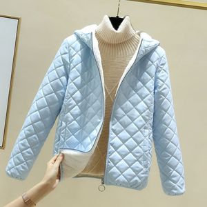加绒加厚棉衣女冬季新款2025羊羔绒短款棉袄纯色百搭连帽棉服外套