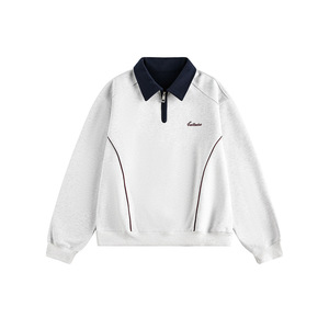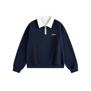 衣道古着2025秋季新款美式复古刺绣拼色翻领宽松休闲百搭套头卫衣