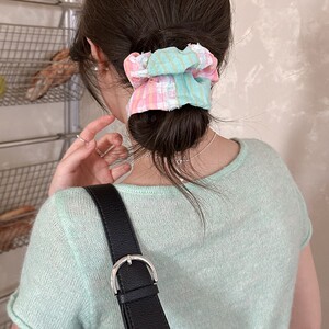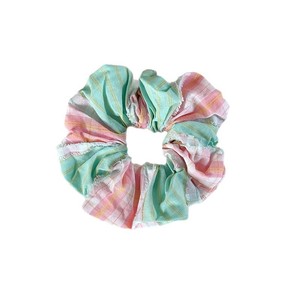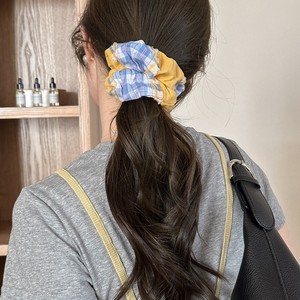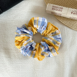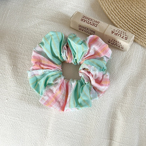 甜美拼色毛边格子大肠发圈女高颜值清新少女感扎发头绳丸子头发饰