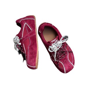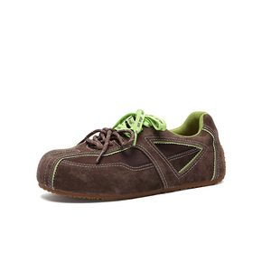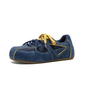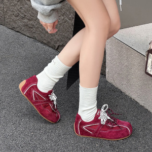 内增拼色德训鞋女2025秋季新款百搭双系带休闲复古软底运动阿甘鞋