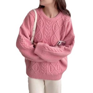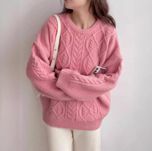 软奶系麻花圆领针织衫女秋冬新款韩版宽松慵懒风软糯上衣套头毛衣