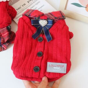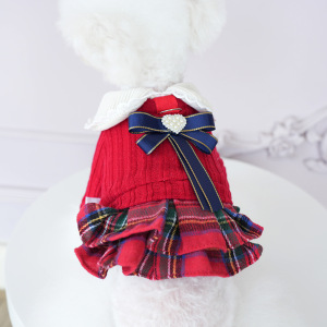 宠物衣服秋冬装狗狗猫咪大红针织情侣装泰迪样比熊保暖加厚两脚衣