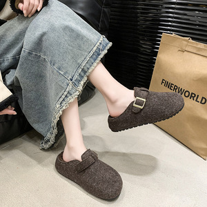 时髦简约皮带扣勃肯拖鞋女秋季新款时尚厚底包头拖鞋轻便懒人鞋