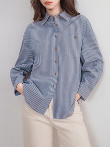 法丝璐蓝色条纹衬衫女春季复古通勤宽松百搭长袖法式高级感上衣