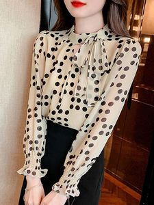 秋装蝴蝶结波点长袖雪纺衬衫女春秋2025新款女装法式别致漂亮小衫