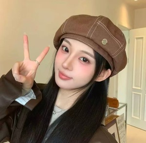 韩版时尚金属标牛仔贝雷帽子女春夏复古画家南瓜帽显脸小八角帽子