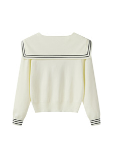 杏色海军领针织衫女2025秋季新款女装学院风宽松减龄毛衣长袖上衣