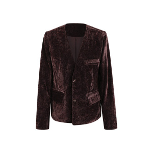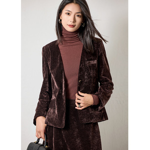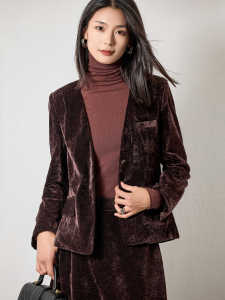 高级感金丝绒v领长袖短外套女2025年秋季新款小个子时尚洋气上衣