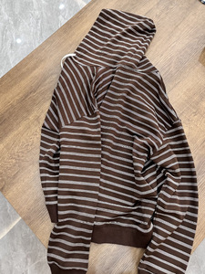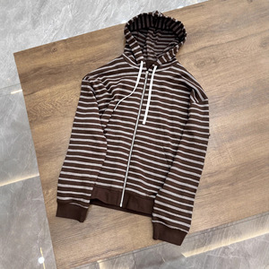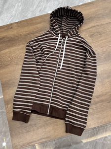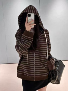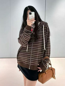 【现货】25早秋新款时尚字母刺绣条纹连帽拉链开衫卫衣外套女