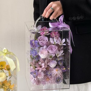 长方形手提亚克力透明永生花展示盒鲜花礼品包装盒diy花艺插花盒
