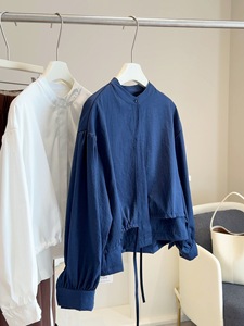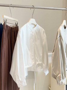 韩版宽松洋气减龄假两件长袖衬衫外套女春秋高级感单排扣抽绳上衣