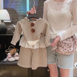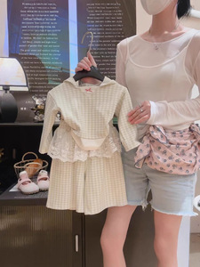 2025新款连帽格子套装 蕾丝花边屁帘阔腿裤女童套装宝宝格子可爱