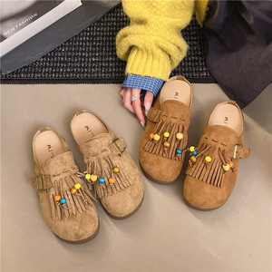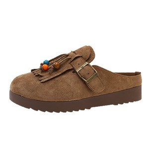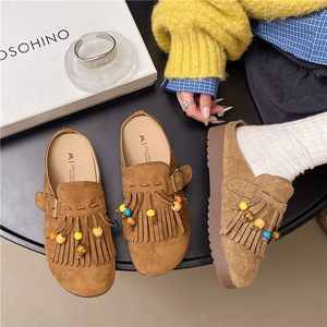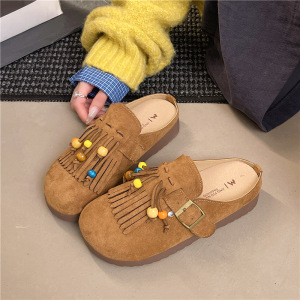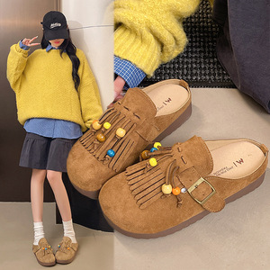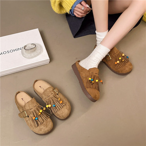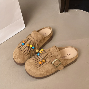 内增高厚底勃肯鞋包头半拖鞋女外穿2025秋季新款流苏串珠博肯拖鞋
