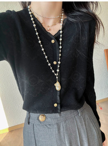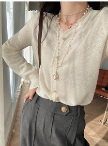 韩版新款含羊毛花边蕾丝针织打底衫2025春季V领甜美显瘦气质开衫