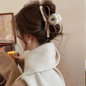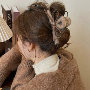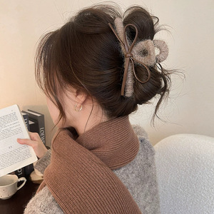 新年咖毛线字母抓夹女2025新高级感鲨鱼夹发夹后脑勺盘发夹子头饰