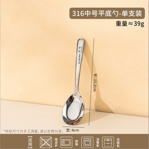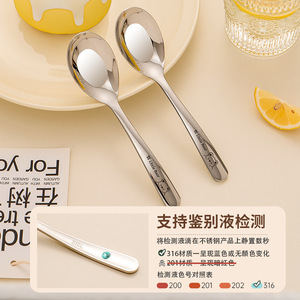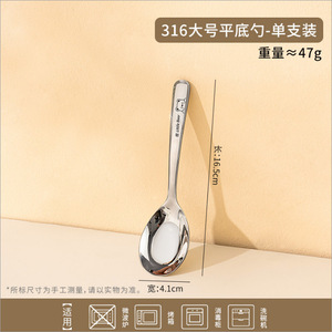 不锈钢勺子家用316食品级吃饭勺子儿童调羹个人专用加深汤匙
