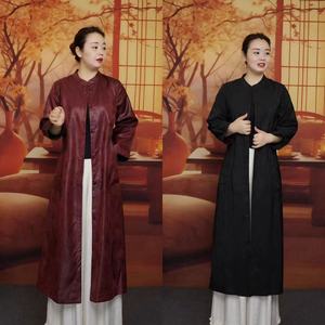 双面双穿新中式国风桑蚕丝油皮子外套女2025新款中年女中长款风衣