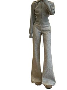 梨形身材灰色微喇叭运动裤子女款夏大码胖mm高腰显瘦休闲阔腿卫裤