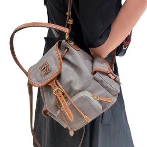 2025秋冬新款谬家双肩张元英同款复古帆布抽绳双肩背包通勤背包