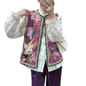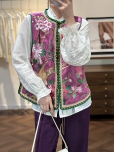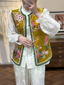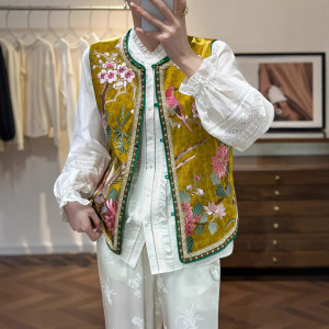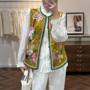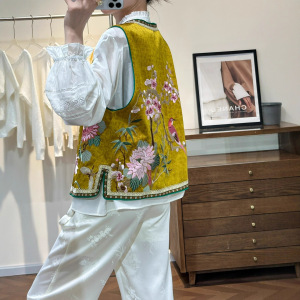 复古中式国风人丝香云纱刺绣马甲背心外套女秋款马夹上衣不退不换