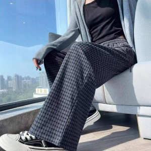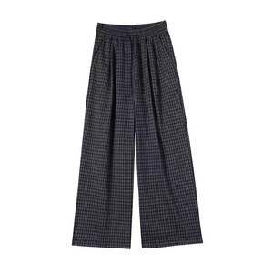 2025新款高腰垂感薄款秋季老钱风阔腿裤宽松显瘦洋气格子休闲裤女