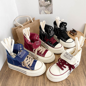H1521 两穿高帮帆布鞋女鞋2025新款板鞋复古休闲爆款超火百搭小众
