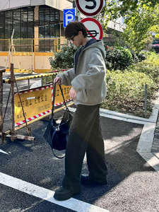 双拉链开衫卫衣男款春秋高级感廓形美式高街重磅硬挺潮牌连帽外套