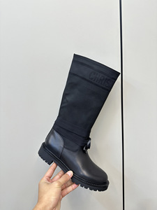 高定版~25新款帆布涂鸦骑士靴女马丁靴字母图案饰面不过膝高筒靴