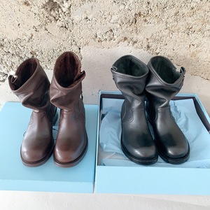高配版!手工纯皮粗跟马丁靴女水洗方头粗跟机车短靴瘦瘦靴堆堆靴