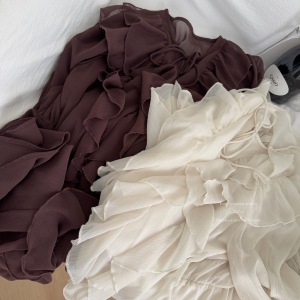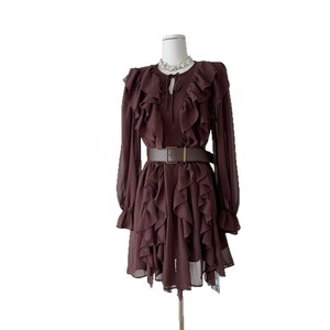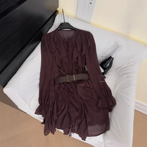 2025秋季新款复古感法式荷叶边不规则长袖连衣裙女短裙配腰带