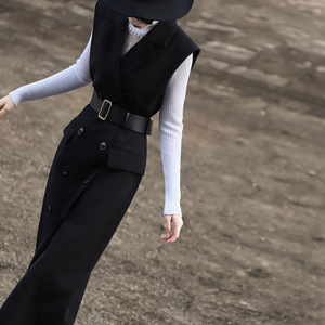 法式高级感2025秋季新款气质通勤双排扣无袖西装马甲连衣裙女