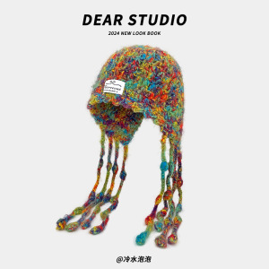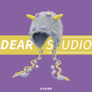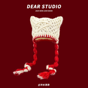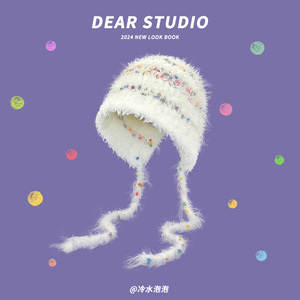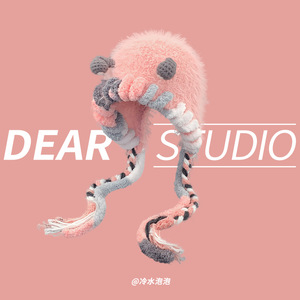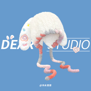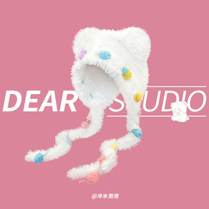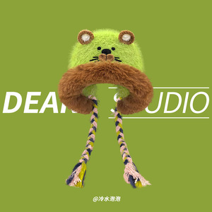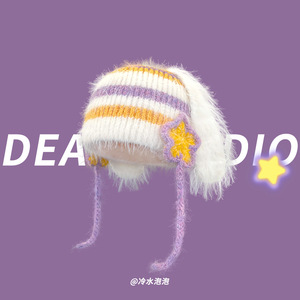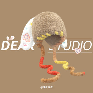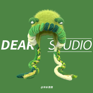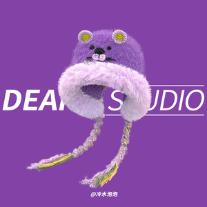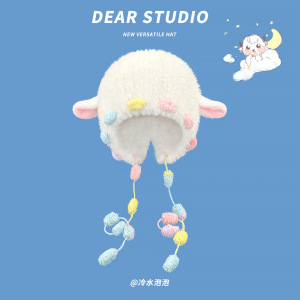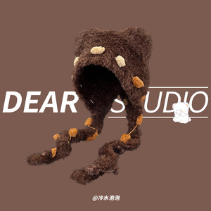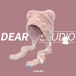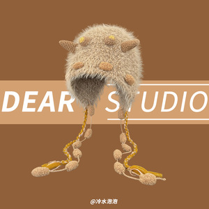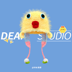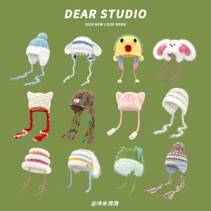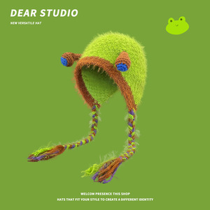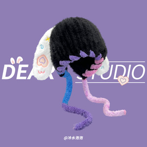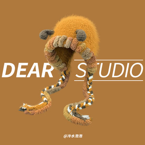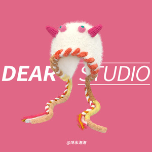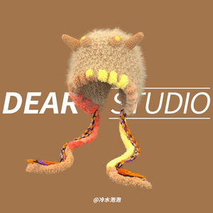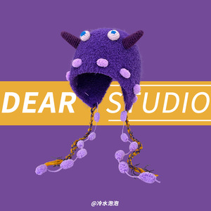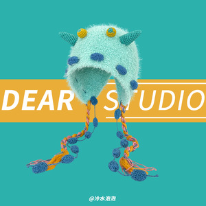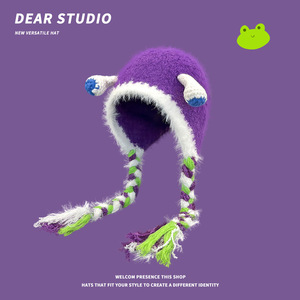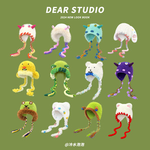 女秋冬季加厚骑行保暖百搭日系搞怪护耳帽可爱小怪兽毛绒针织帽子