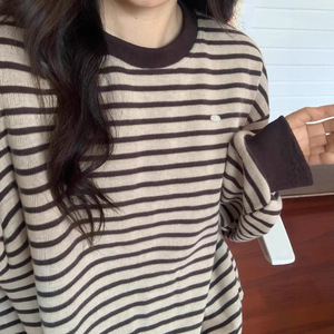 跨境大码oversize条纹圆领卫衣女装春秋2025新款爆款宽松独特上衣