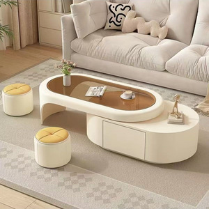 岩板茶桌客厅家用奶油2025现代小户型新款轻奢简约伸缩茶几